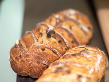 ----------------------------------------------------50% organic "Bise" wheat flour, 50% organic unbleached white flour, dried raisins